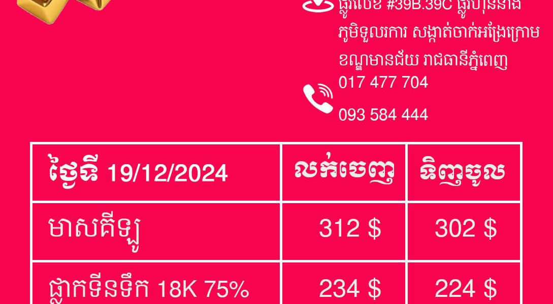អត្រាប្តូរប្រាក់គោល រវាងរូបិយបណ្ណផ្សេងៗជាមួយប្រាក់រៀល ប្រចាំថ្ងៃទី២០ ខែធ្នូនេះ អត្រាផ្លូវការ ១ដុល្លារអាមេរិក ស្មើ៤,០១៩រៀល។ នេះបើយោងតាមសេចក្តីជូនដំណឹងរបស់ធនាគារជាតិនៃកម្ពុជា ចុះថ្ងៃទី១៩ ខែធ្នូ ឆ្នាំ២០២៤នេះ។ សូមបញ្ជាក់ថា អត្រាប្តូរប្រាក់អាមេរិកធៀបជាមួយប្រាក់រៀលខ្មែរ មិនមានការប្រែប្រួលច្រើននោះទេ មួយរយៈពេលកន្លងមកនេះ៕